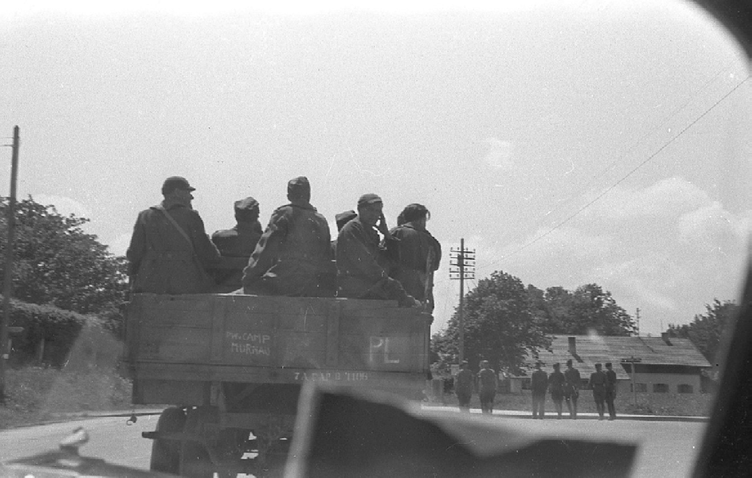 Военный транспорт: солдаты сидят на грузовике с надписью «PW Camp Murnau». Это именно та самая фотография, которая подсказала французам Оливье и Алену, где были сделаны эти фотографии. Foto: hollow.one.free.fr / Rempfer collection