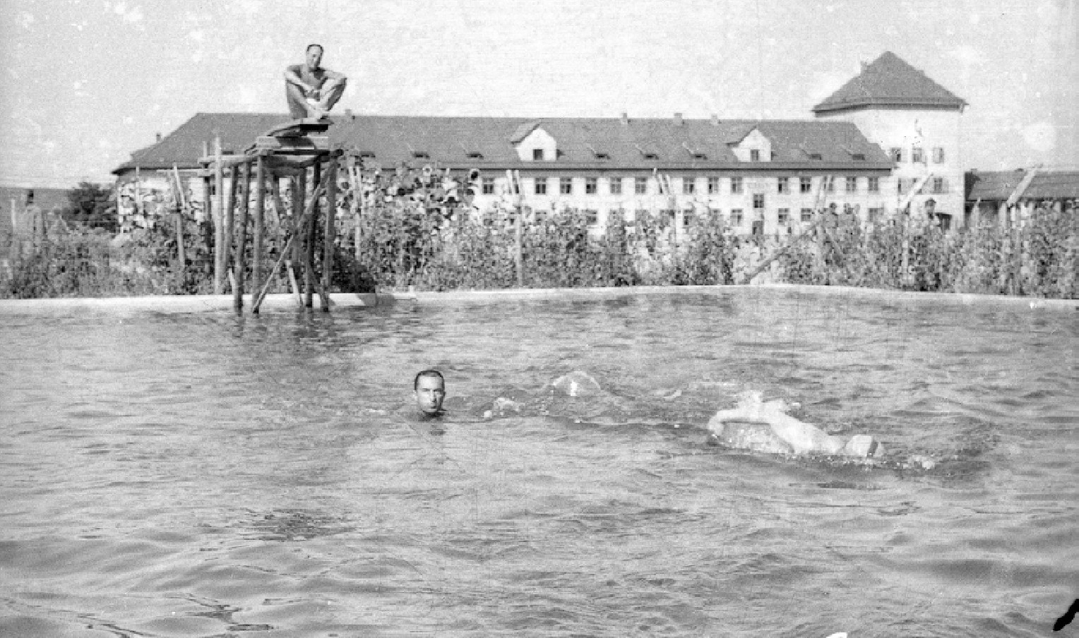 Купания за колючей проволокой: по некоторым фотографиям, например, как по этой, зафиксировавшей купания военнопленных в бассейне, можно даже подумать, что это какой-то провинциальный дом отдыха, а не лагерь для военнопленных. Однако остается вопрос, действительно ли здесь разрешали купаться заключенным лагеря, или, возможно, только охранникам? Foto: hollow.one.free.fr / Rempfer collection