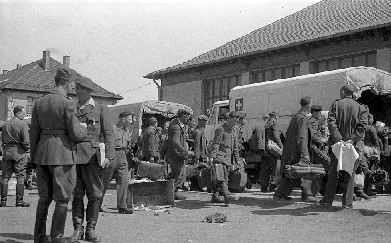 С упакованными вещами: возможно мы видим здесь узников лагеря, готовящихся к отъезду из Мурнау? Foto: hollow.one.free.fr / Rempfer collection