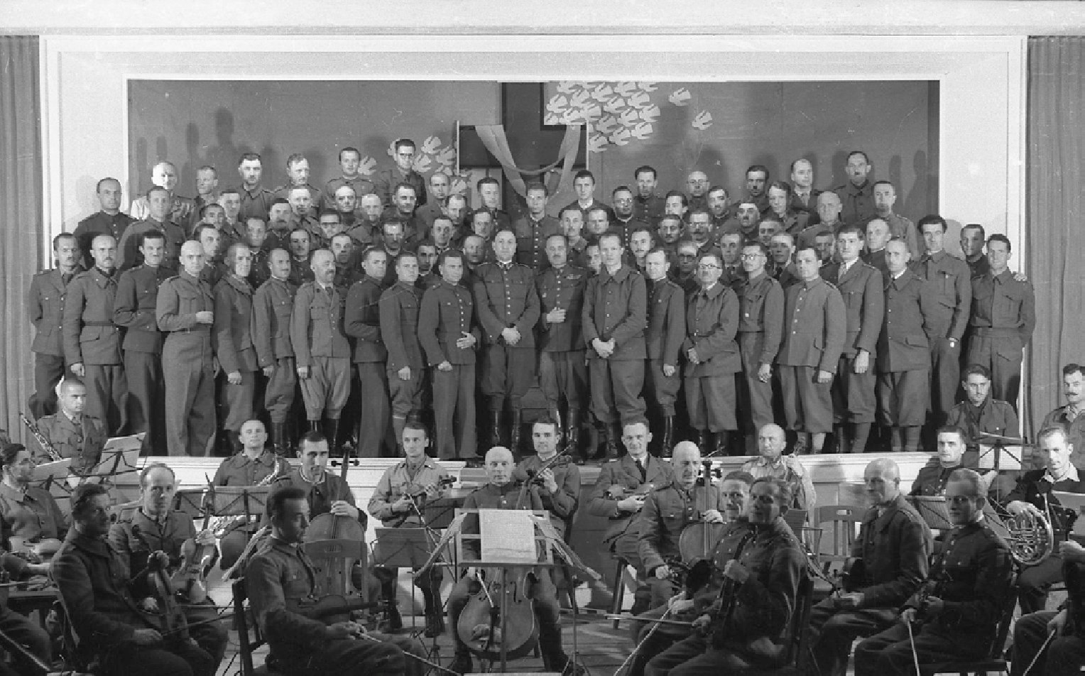 Перед ними в оркестровой яме сидят другие военнпленные, у них в руках скрипки, флейты и трубы. Они сосредоточены и в хорошем настроении, полностью поглощены игрой.